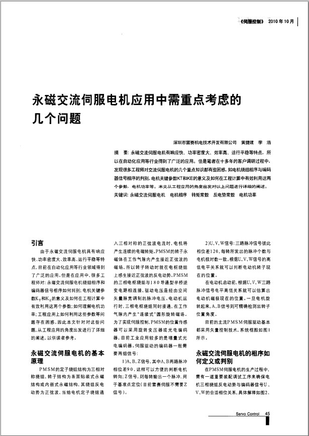 永磁交流伺服電機(jī)應(yīng)用中需重點(diǎn)考慮的幾個(gè)問(wèn)題