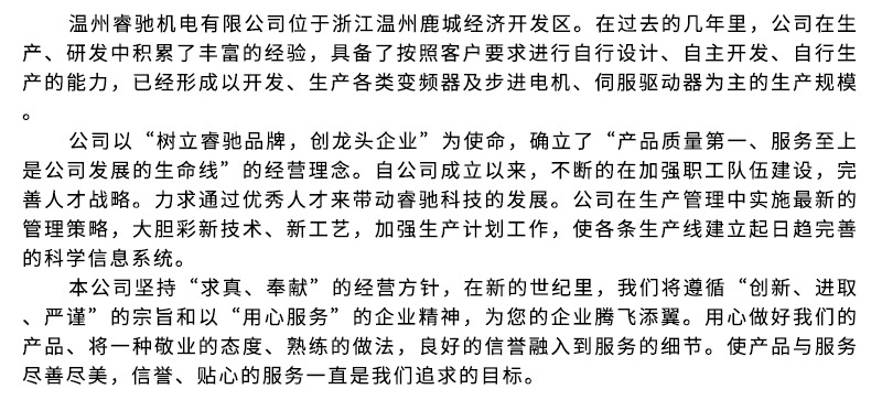 溫州睿馳機電有限公司是智能設備運動控制領域的知名品牌和行業(yè)領導者