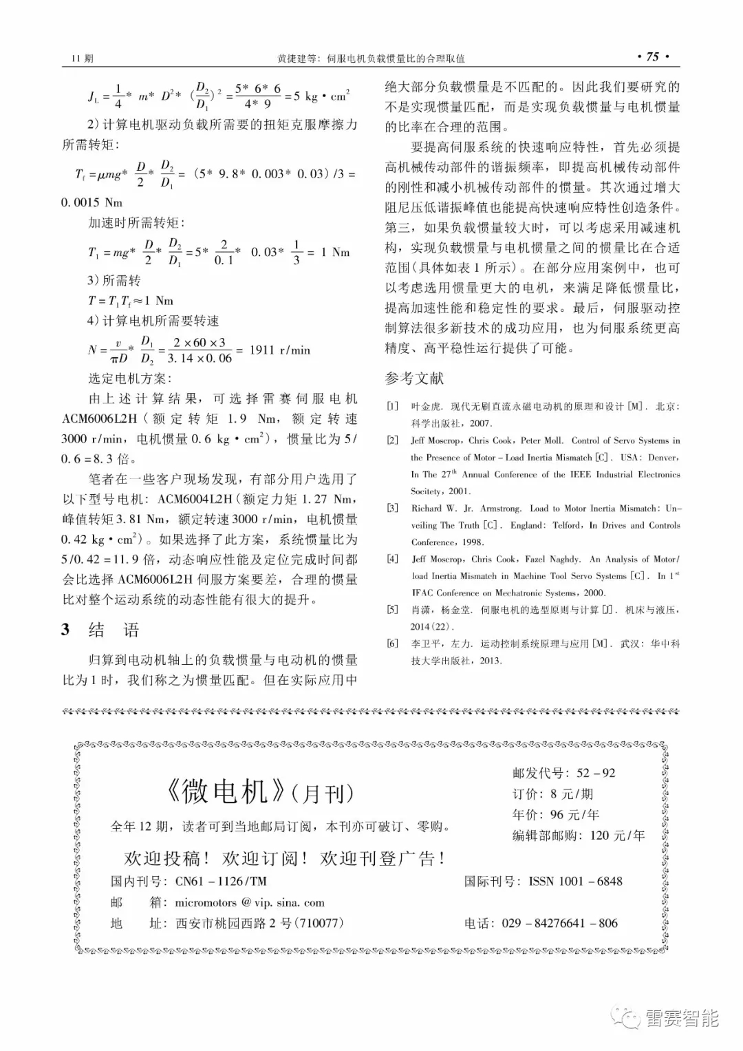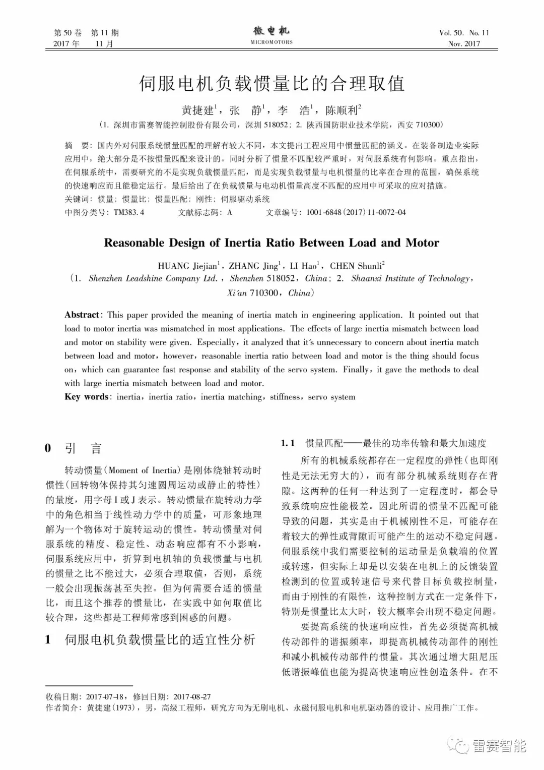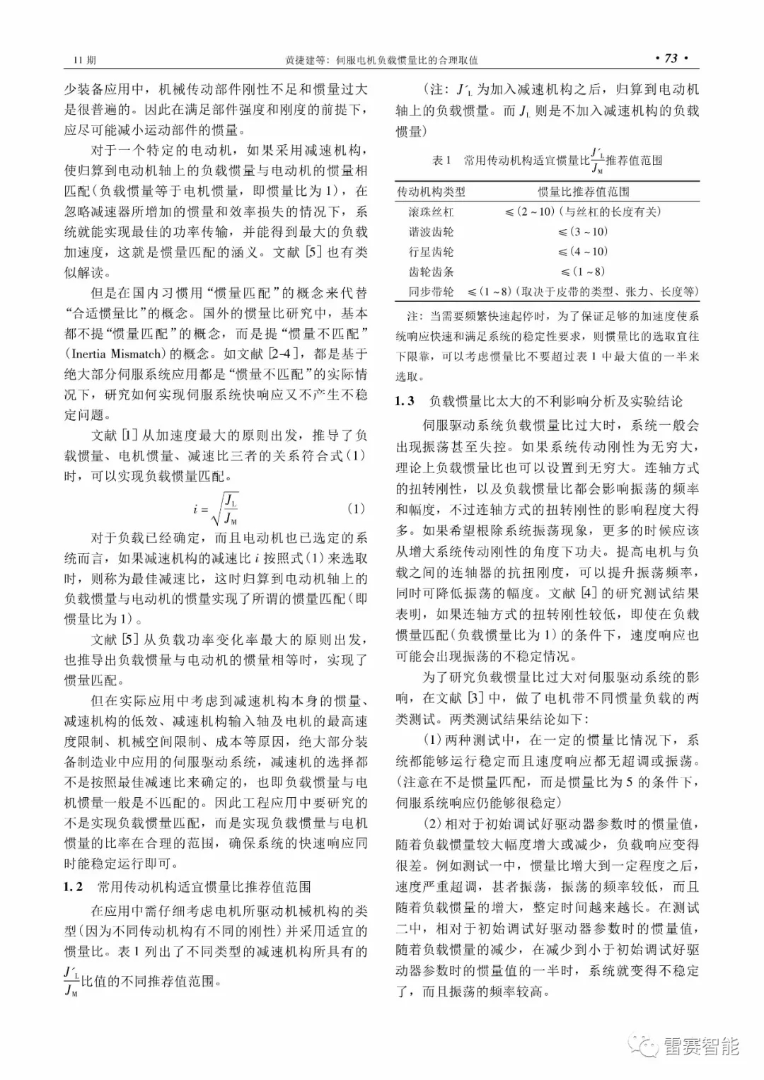 伺服電機(jī)負(fù)載慣量比的合理取值